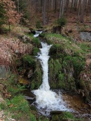 Jaruščin vodopád se nachází na Osvinovském potoce zhruba 100 metrů nad místem, kde potok překonává