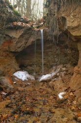Hrana vodopádu je tvořena nezpevěnými sedimenty a na okolí je dobře vidět, jak jsou jednotlivé vrstvy těchto sedimentů postupně erodovány.
